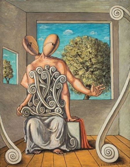 Con un’accentuata ironia e una tavolozza più vivace, l’artista si allontana dalla visione nichilista e inquieta degli anni Dieci per reinterpretare, in chiave più serena, i temi che avevano segnato la sua prima stagione metafisica.