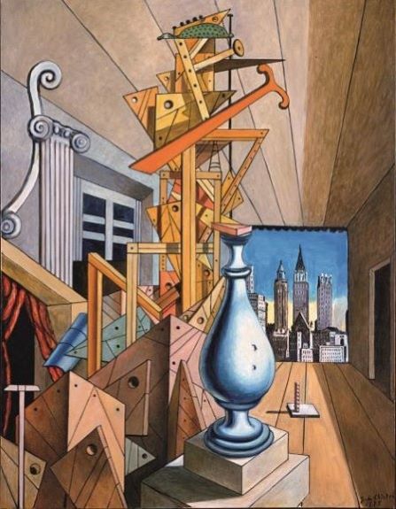Con un’accentuata ironia e una tavolozza più vivace, l’artista si allontana dalla visione nichilista e inquieta degli anni Dieci per reinterpretare, in chiave più serena, i temi che avevano segnato la sua prima stagione metafisica.