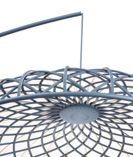 Skynest è infatti composta da 24 bacchette luminose a LED ricoperte con una trama tessile bicolore. La luce è emessa da un solo lato, quello bianco, mentre all’esterno rimane a vista il colore del tessuto. L’intersecarsi dei vari elementi luminosi con altre 48 bacchette colorate sui due lati dà vita alla lampada: una presenza eterea, leggerissima, chiaramente ispirata al mondo artigianale ma inaspettatamente tecnologica.