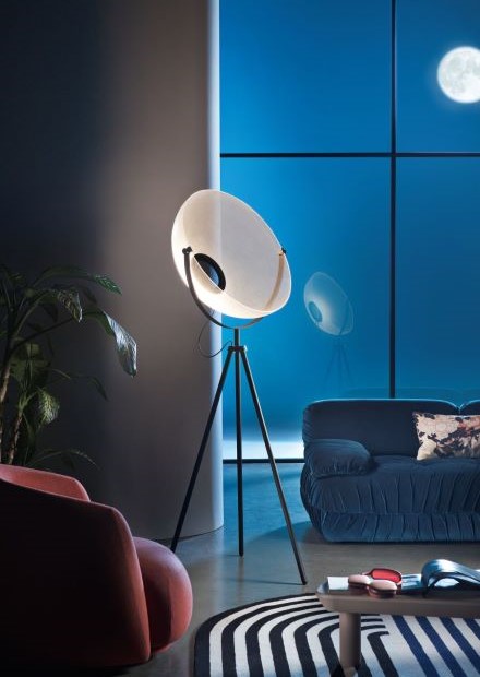 Una serata al chiaro di luna? Ecco Demì Moon (foto sotto a sx), la lampada di Stilnovo formata da una cupola trasparente che ricorda l’inconfondibile silhouette della luna. Grazie all’esclusiva tecnologia OptiLight™, una volta accesa, il bordo inferiore e le migliaia di microincisioni al laser della superficie diffondono un’illuminazione morbida e omogenea che viene generata da un’invisibile sorgente LED.