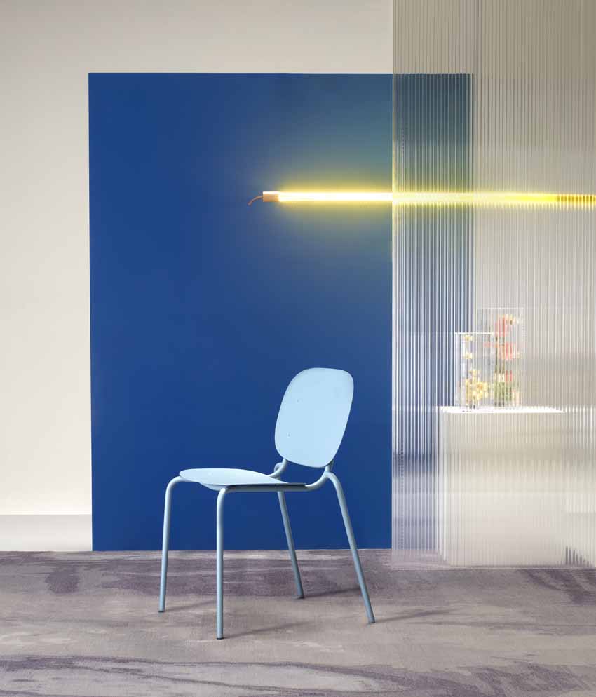 Telaio + seduta + schienale: questa è la tipica sintassi costruttiva di una sedia. Con SI-SI abbiamo snellito il telaio al quale si fissa un’unica scocca che può fungere indifferentemente sia da schienale che da seduta. Da qui il nome SI-SI, un suono ripetuto due volte, o meglio ancora un elemento ripetuto due volte!