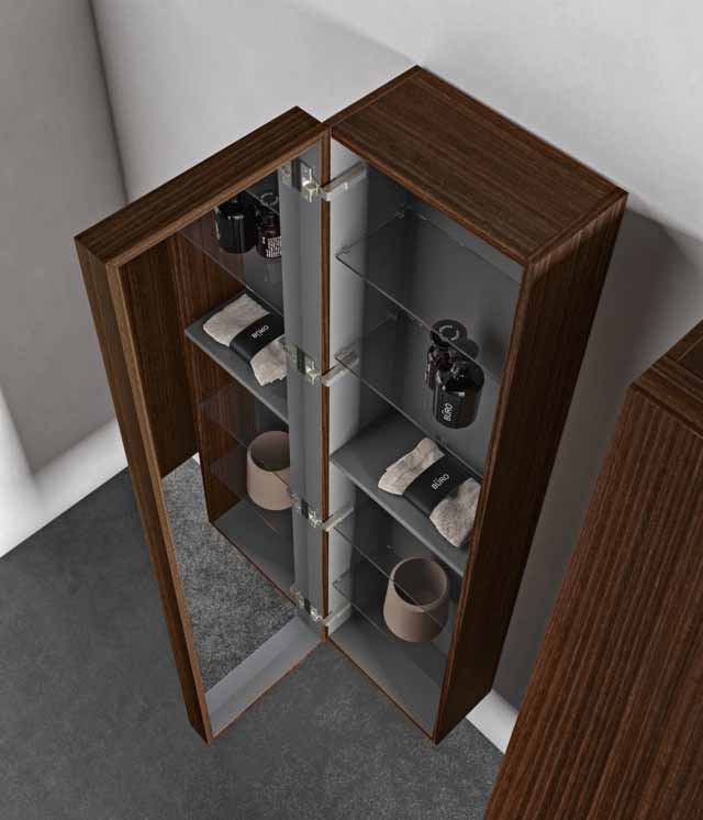 Infatti, per enfatizzare lo spazio a volte è sufficiente aumentare la superficie riflettente, scegliendo quindi modelli di dimensioni pronunciate o anche a figura intera, proprio come quello proposto nella collezione Eden, abbinabile a colonne a giorno con finiture coordinate.(EDEN 58)