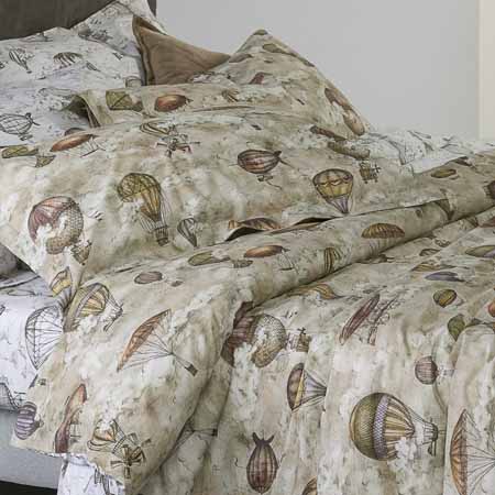 Le stampe dal sapore sempre inedito sono declinate sul percalle Louisiana e vanno dalla rievocazione in chiave vintage di un cielo popolato da affascinanti mongolfiere in Zeppelin, alle geometrie dinamiche di Forme, dalle onde morbide di Waves al rigore tagliente di Zago fino ad arrivare ai colori pastello sfumati di Trasparenze e Gradient.