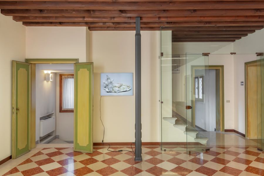 Tra saloni veneziani e ambienti plasmati dall’estetica degli anni Settanta, nei cortili e nei luoghi di transito come il piano scale, la mostra sviluppa un itinerario immersivo su più piani, in cui ogni opera dialoga con l’identità stratificata del luogo.