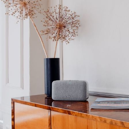Linee morbide, struttura in alluminio spazzolato e dettagli curati: il Motiv Go Voice è un altoparlante portatile che si distingue anche da spento. Compatto e raffinato, si adatta perfettamente a interni moderni e ambienti dallo stile pulito.