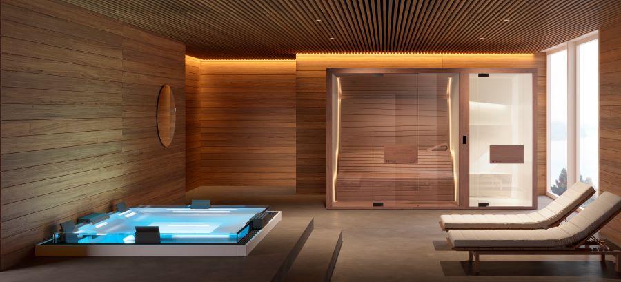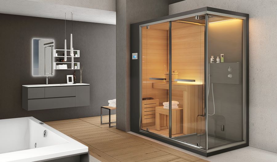 ETHOS C di Sauna Vita di Gruppo Geromin ridisegna il ruolo della sauna e del bagno turco per gli ambienti domestici. Si adatta agli spazi piccoli e dà la possibilità di realizzare sauna e bagno turco su misura. Nelle sue dimensioni più compatte, ETHOS C è perfetta e nelle ristrutturazioni è l’ideale per sostituire una precedente vasca o un box doccia con una soluzione wellness completa.