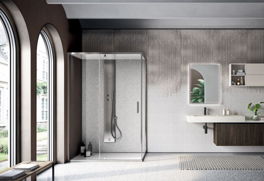 Le misure minime disponibili partono da 70×70 cm per la versione battente, 70×100 per quella scorrevole e 90×70 per l’apertura pivottante. La colonna G-STEAM ha uno spessore di soli 3,8 cm e non necessita di incasso nel muro poiché il generatore di vapore è alloggiato sopra il tetto del box doccia.